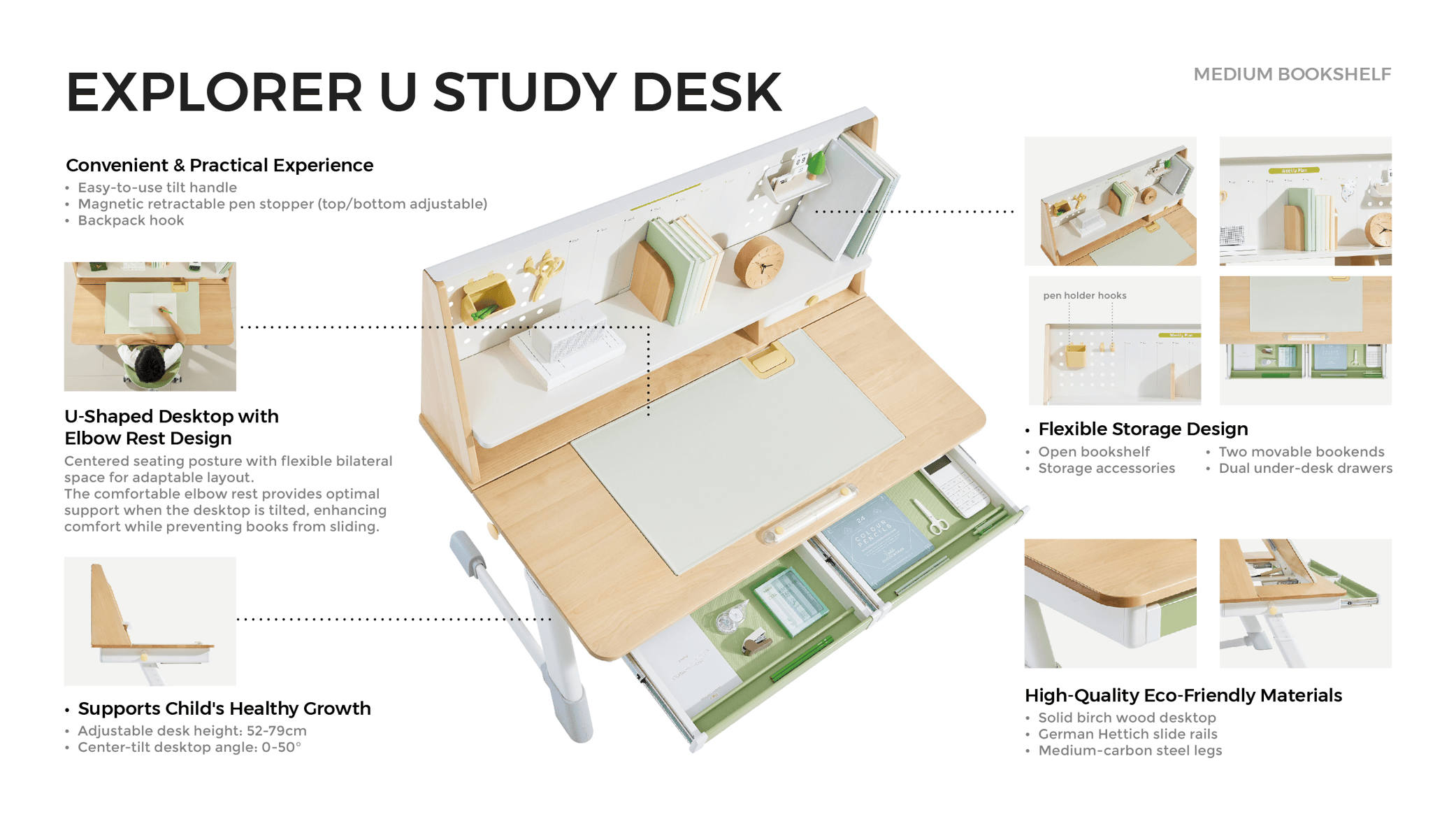 Метод подъема | 52-79 см (подъем вручную) | Угол наклона рабочего стола | 0~50°(механизм газовой пружины) | |||