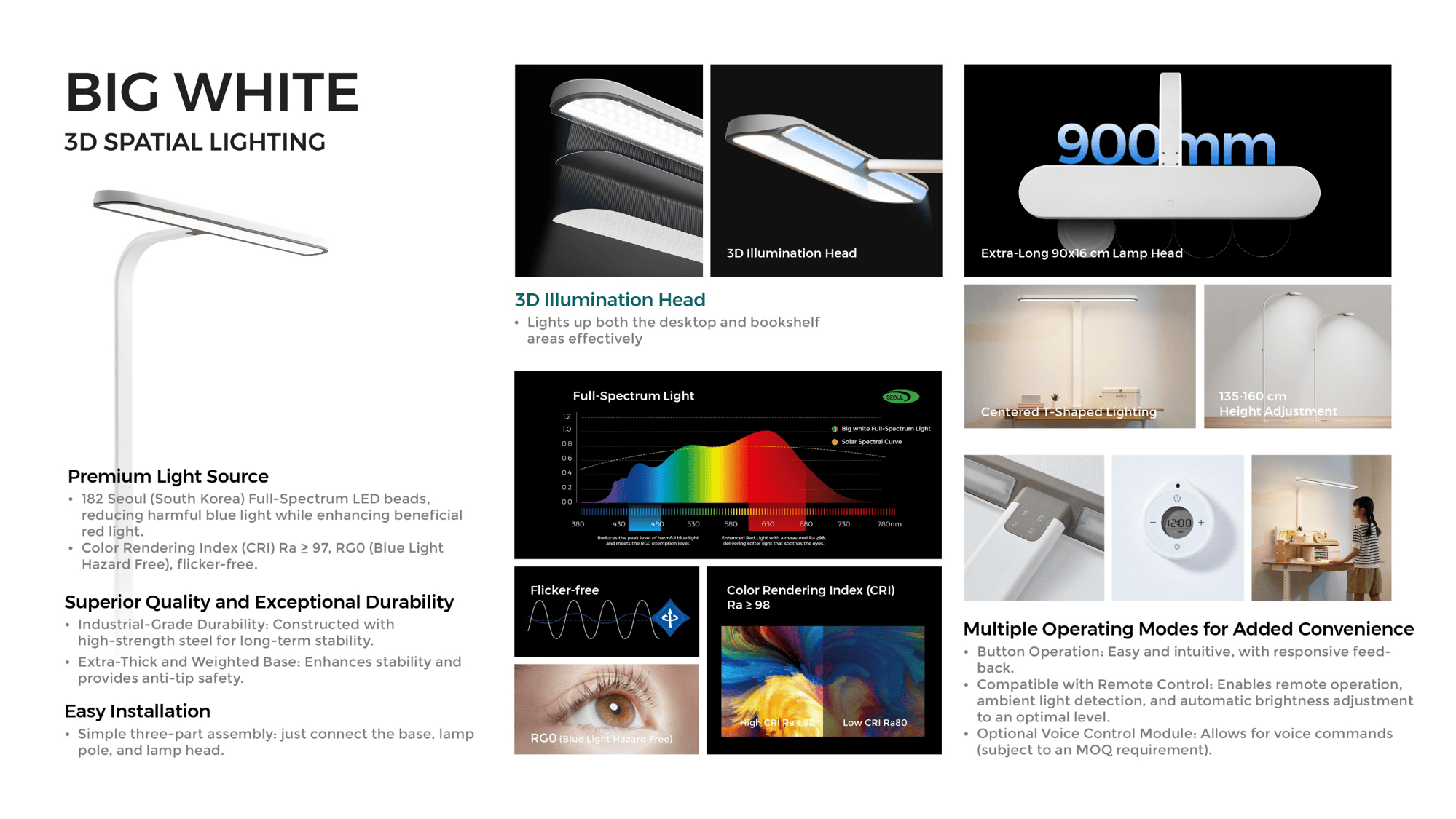 Основные параметры | Индекс цветопередачи (CRI): Ra≥97 Цветовая температура: 4000К Мощность: 36 Вт Материалы: АБС/алюминий/сталь. Защита от синего света: RG0 Метод управления: Сенсорное управление/Пульт дистанционного управления (опционально)/Голосовое управление (опционально). | ||