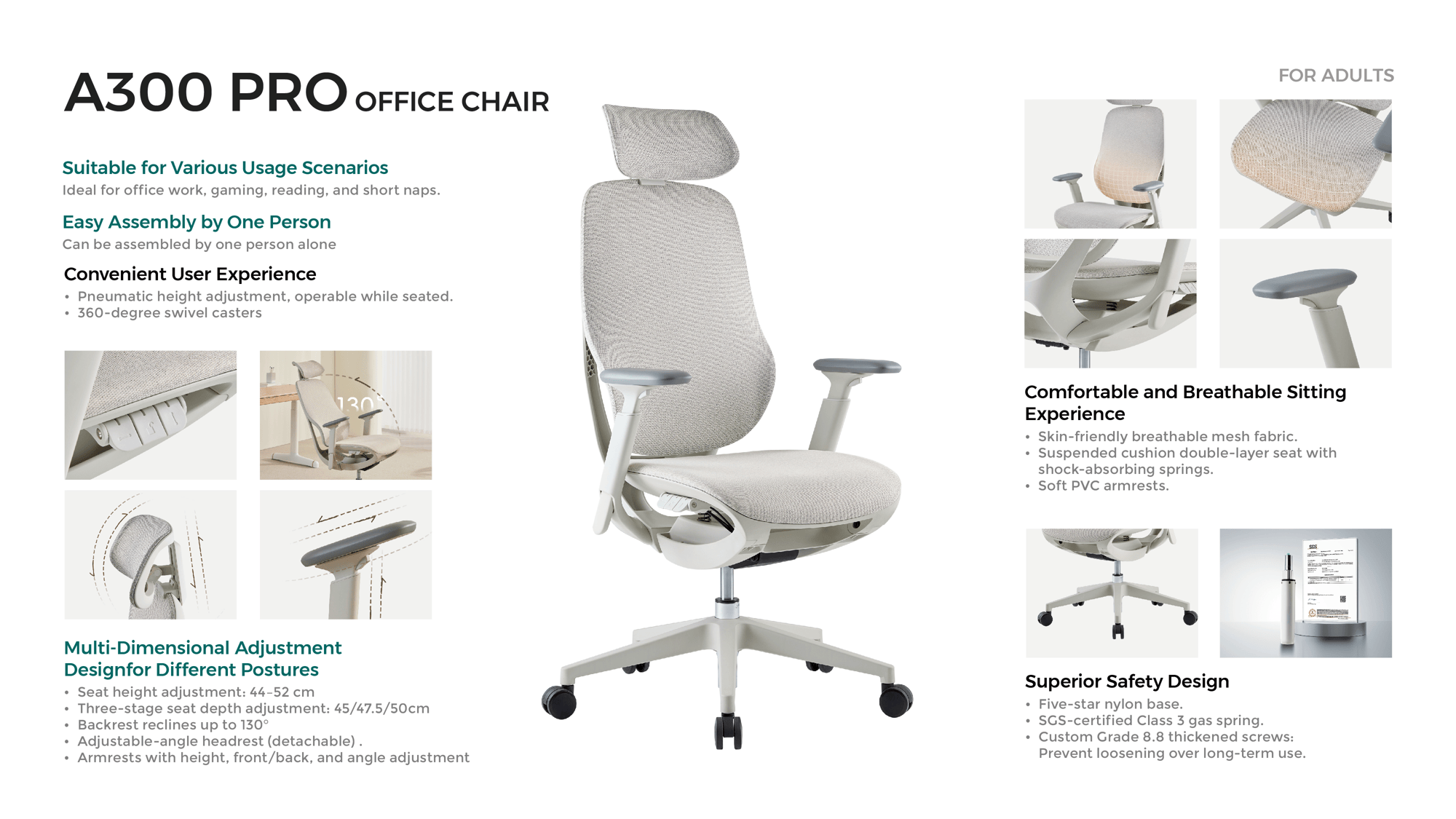 ОФИСНОЕ КРЕСЛО ДЛЯ ВЗРОСЛЫХ A3OO PRO