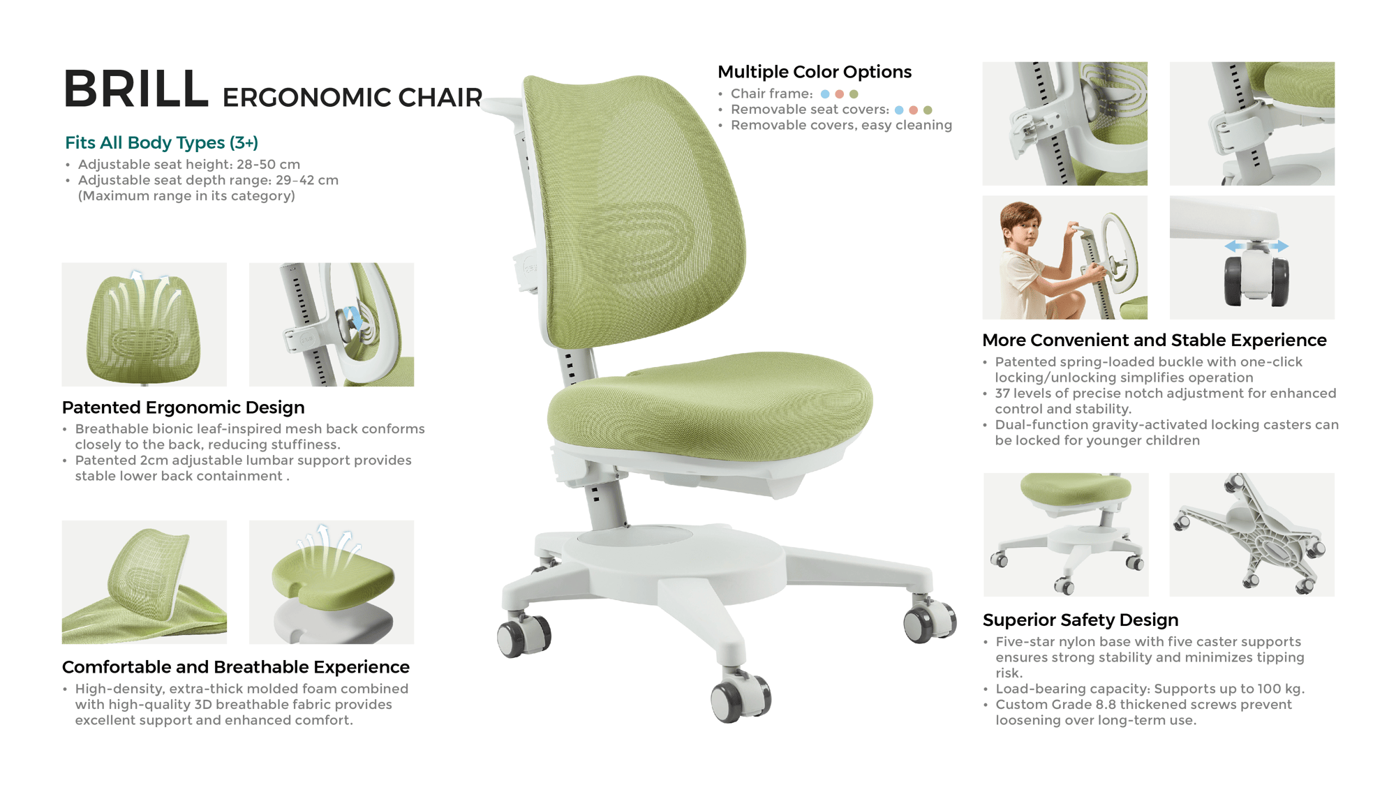 2M2KIDS Brill РЕГУЛИРУЕМАЯ ПОДДЕРЖКА ПОЯСНИЦЫ Учебное кресло